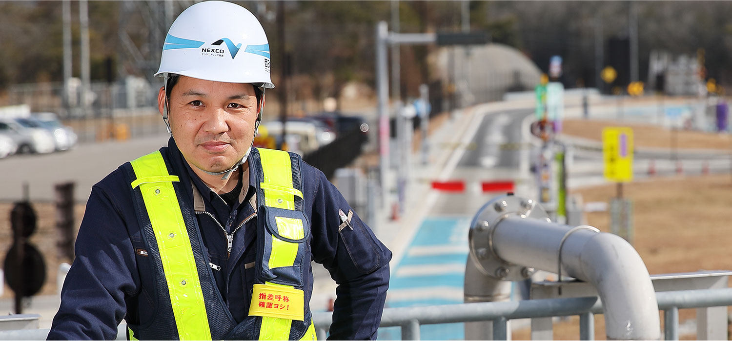 休憩施設を利用するお客様には綺麗な水を提供する、地域住民の方には河川を汚さないよう、綺麗にした水を放流する。この「当たり前」を守り続けることが私たち水質管理チームの使命です。高速道路を安全・安心で快適に利用できる環境作りはもちろんですが、高速道路周辺の環境にも配慮し、地域住民の方の生活を守ることも大切な使命です。この使命を果たすため、常に情報収集を行い、得た知識を仕事に活かしています。今後も人々の生活を守り続ける高速道路のスーパーホームドクターとして邁進していきたいです。