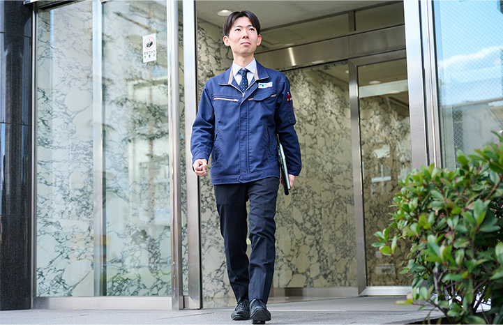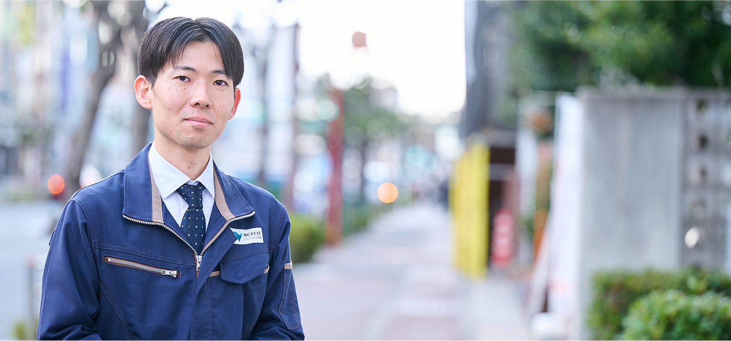 2018年に新卒で入社し、施設職として神戸事務所で約7年間、設備保守業務と保全管理業務に従事してきました。施設職は、高速道路上の道路情報板や速度規制標識、照明設備、トンネル防災設備などの電気・機械設備の健全性を保つための維持管理を担当する職種です。設備保守業務ではこれらの設備が正常に稼働しているかの点検や健全性を確認する診断・検査を行っています。そのため、お客様が高速道路を24時間356日絶え間なく安心・安全に走行できる状態を保つことが求められます。